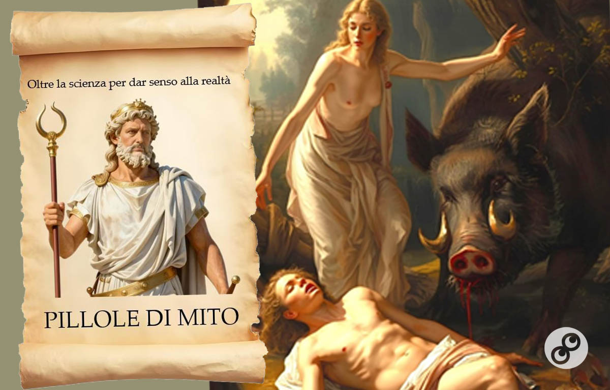 Il mito è di origine probabilmente asiatico e simboleggia la natura che rigogliosa e fiorente in estate, viene uccisa dall’inverno (il cinghiale) per poi ridestarsi nuovamente in primavera.